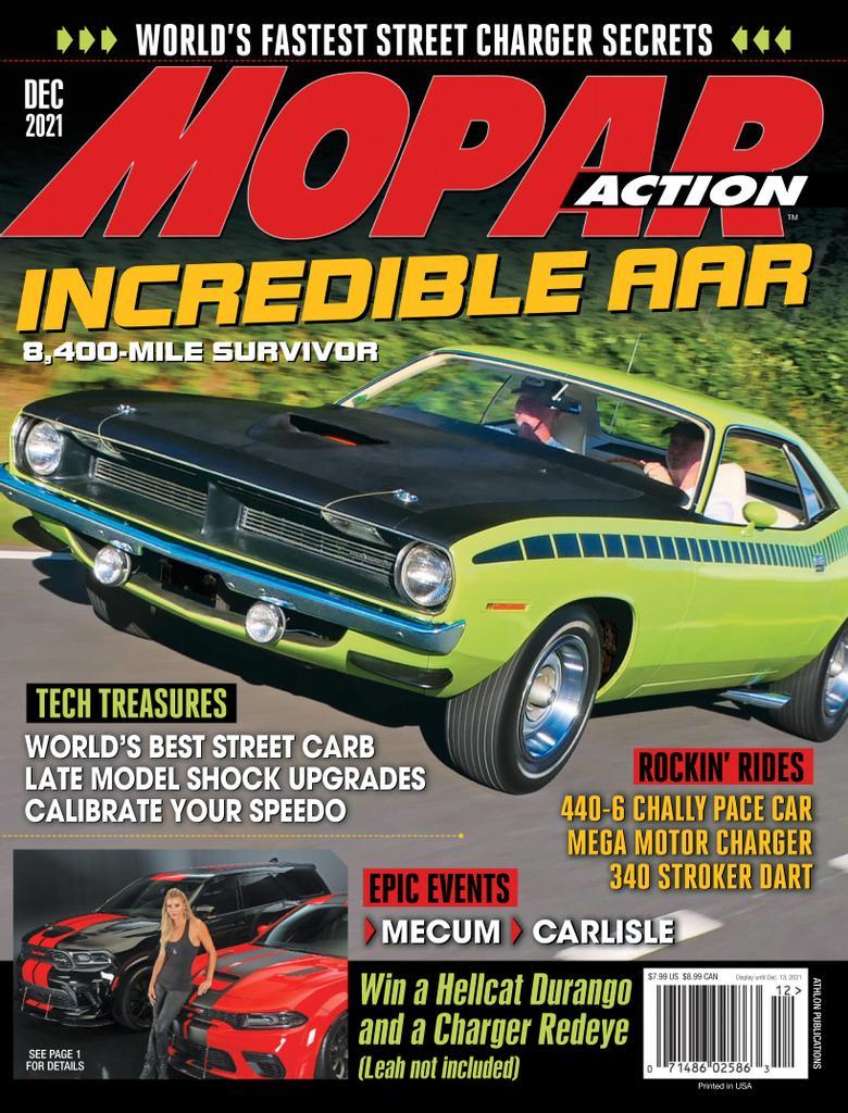 Mopar Action is the best-selling Mopar enthusiasts' magazine on the market today. Covers the entire world of Chrysler, Plymouth and Dodge vehicles, including classics, muscle cars, race cars, new car road tests, performance tips and technical advice article, restoration advice and club news.